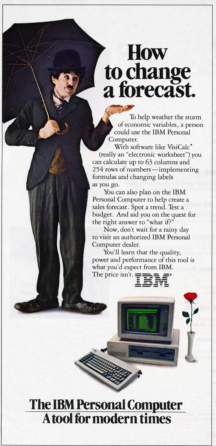 Although my first home computer was the Commodore VIC-20, it was the IBM Model 5150 (aka the IBM PC) that had me mesmerized. The model 5150 was released back in August of 1981 and not long after that, I watched a TV commercial featuring a Charlie Chaplin character (see: https://www.youtube.com/watch?v=kQT_YCBb9ao) running around being completely disorganized. He finally used the IBM PC to help him get organized.